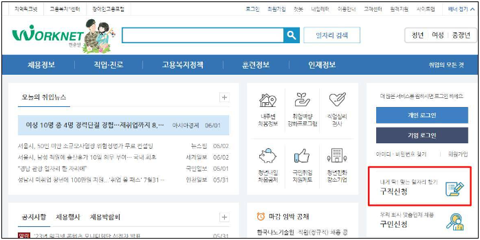 1. 워크넷에 접속해서 구직신청을 합니다. ▼
